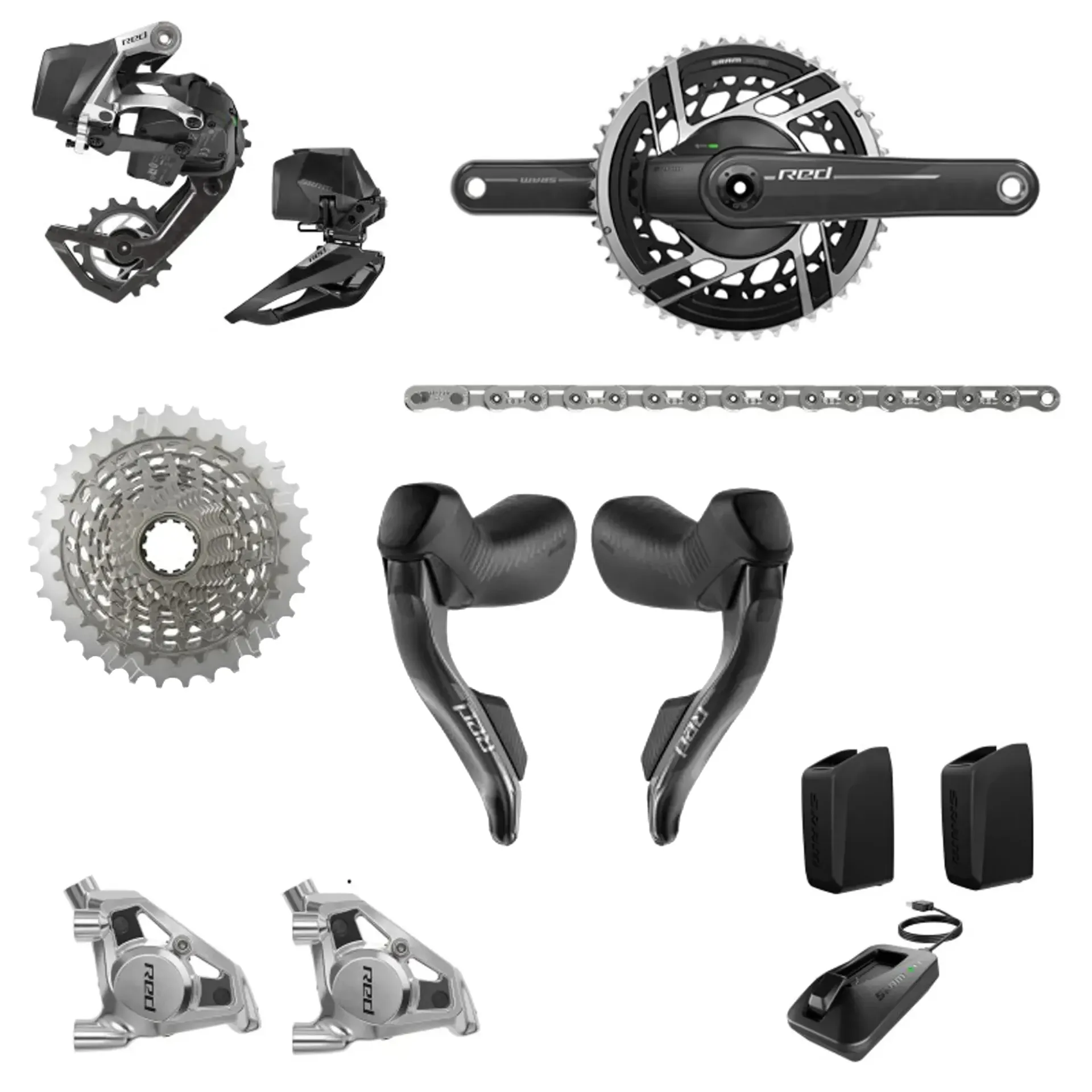 Upgrade your ride with this premium SRAM Red eTap AXS groupset with integrated power meter, offering top-tier wireless performance, lightweight construction, and pro-level precision.