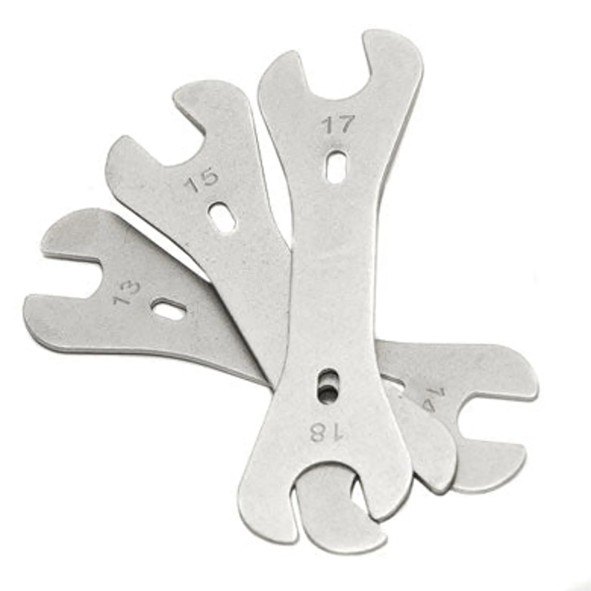 Fat Spanner Cone Spanner set. Used to adjust the bearings in most bike wheels. Heat treated double ended spanners 3 spanners included 1 x 13 - 14mm, 1 x 15 - 16mm, 1 x 17 - 18mm